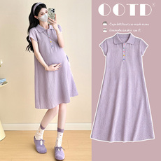 孕妇套装2026新款夏季Polo领短袖薄款上衣时尚宽松背带裙两件套女