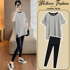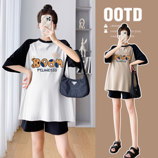 大码孕妇上衣夏季纯棉短袖T恤中长款小个子时尚休闲套装百搭200斤