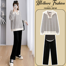 孕妇套装春秋季2026新款韩版褶皱星星圆领宽松长袖上衣裤子两件套