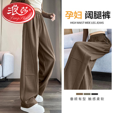 浪莎孕妇裤子春秋季外穿加绒2023新款直筒裤休闲垂感阔腿裤孕妇装