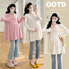 孕之优品白色娃娃衫孕妇上衣洋气遮孕肚春夏孕妈高级穿搭孕妇装