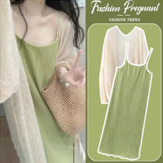 孕妇连衣裙套装春秋夏2026新款长袖防晒上衣宽松长款吊带裙两件套