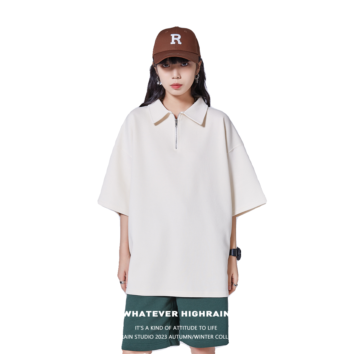 夏季短袖Polo衫女清仓休闲纯色半拉链T恤学院风宽松翻领半袖上衣