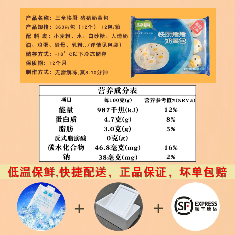 三全快厨卡通奶黄包速冻早餐包子半成品商用网红动物包点馒头面点