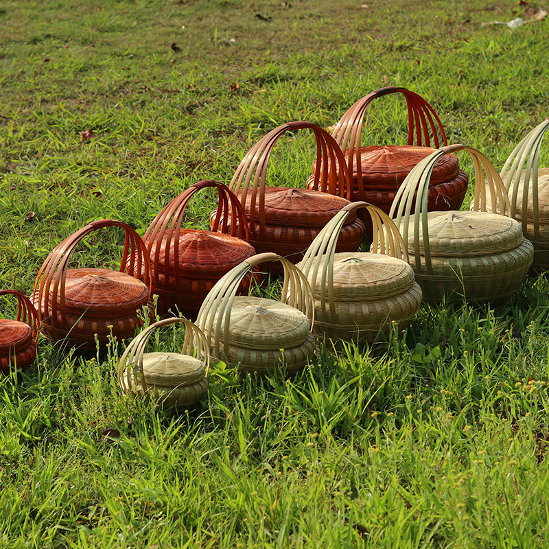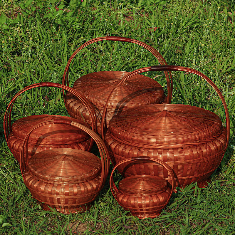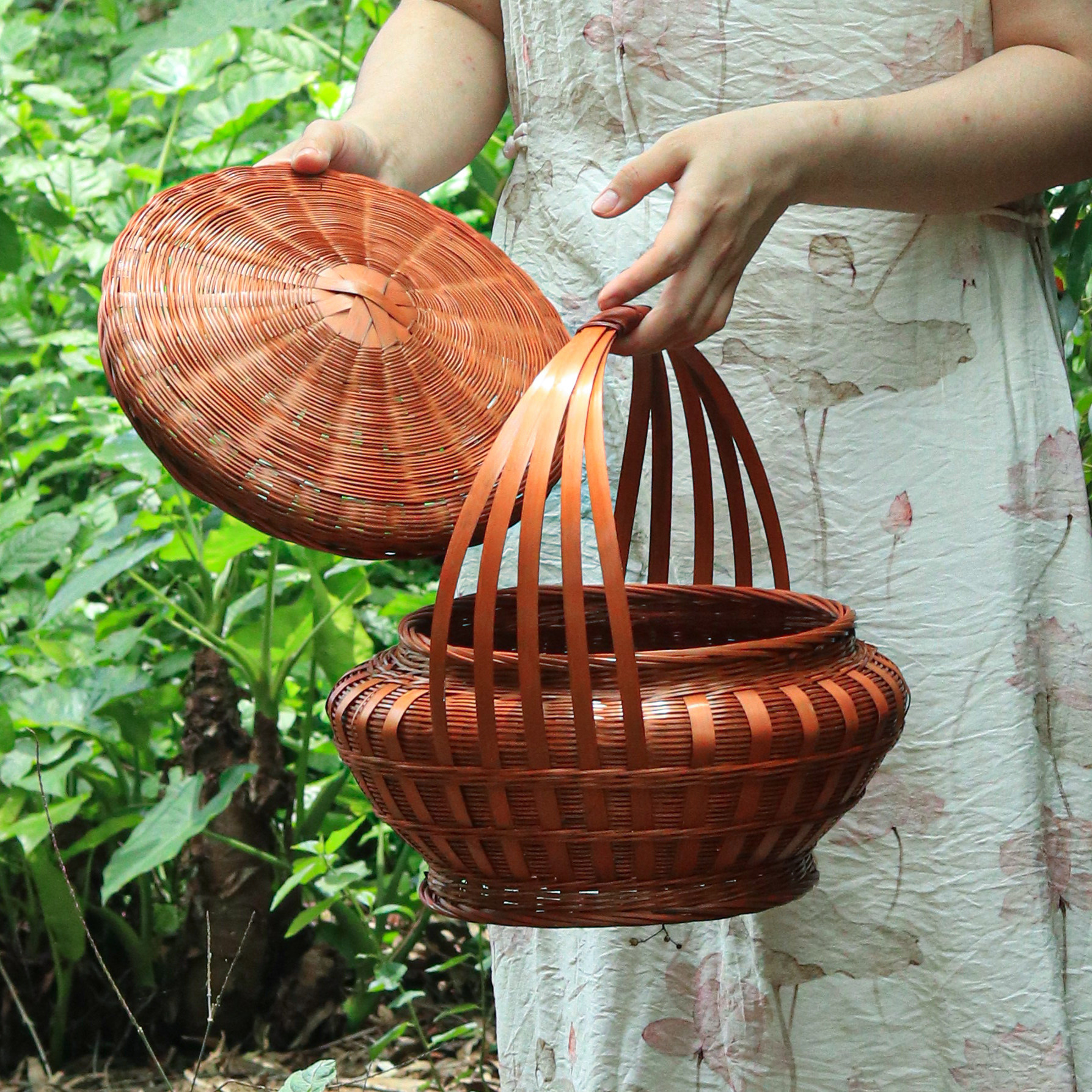 竹编手提篮带盖拜财神篮竹青拜神供奉篮复古结婚喜庆拜拜箩礼品篮