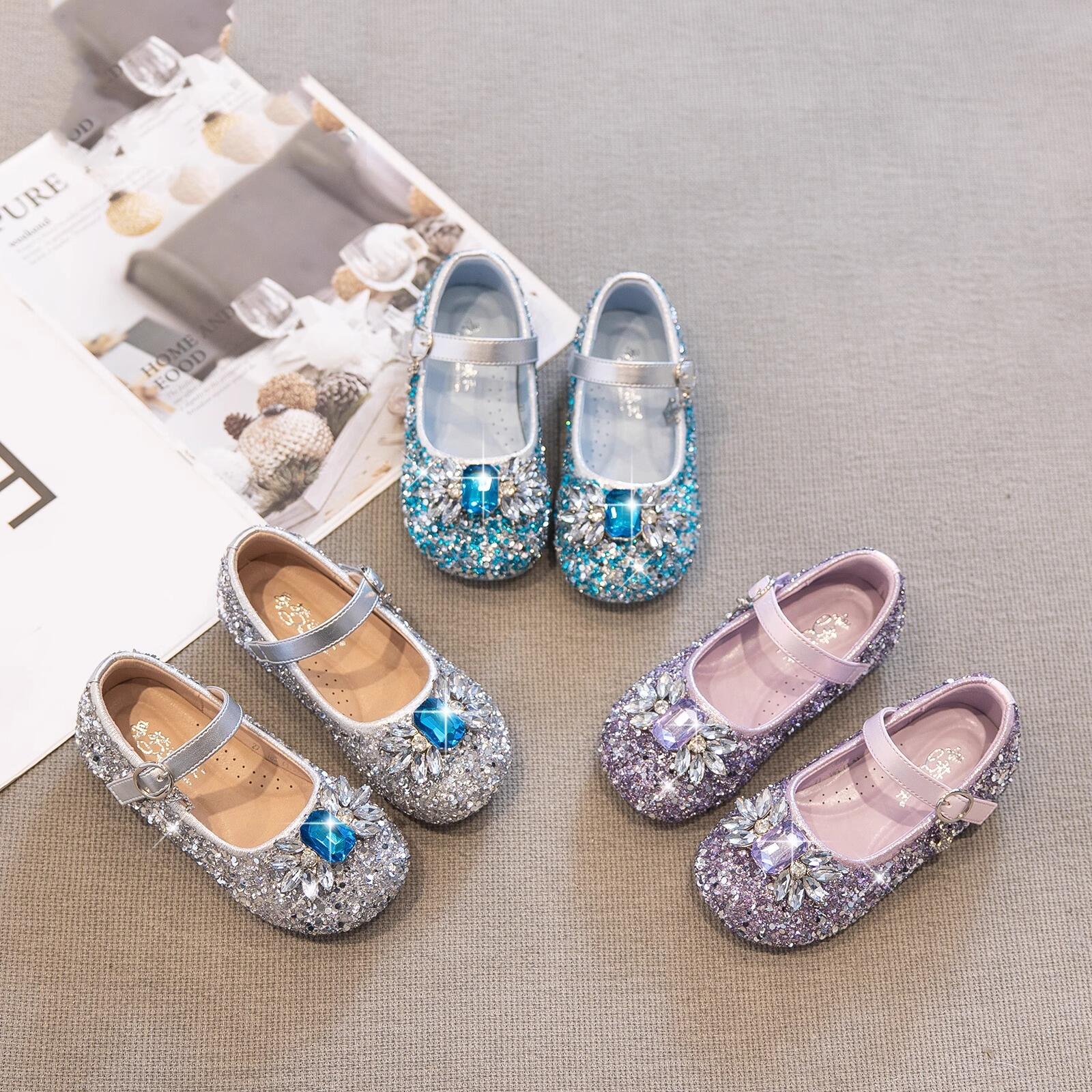 女童公主鞋2025新款春秋儿童水晶鞋小女孩软底爱莎单鞋演出小皮鞋