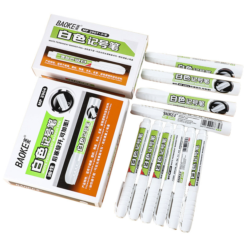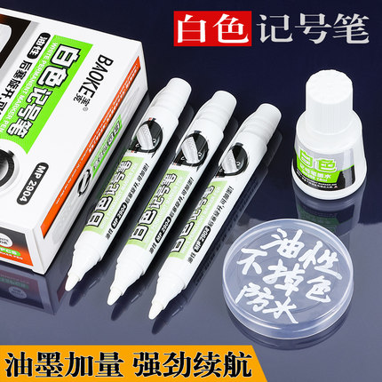 宝克白色记号笔快干油性笔可加墨防水不易掉色大头笔轮胎油漆笔用玻璃塑料陶瓷木头皮革纸大容量马克勾线笔