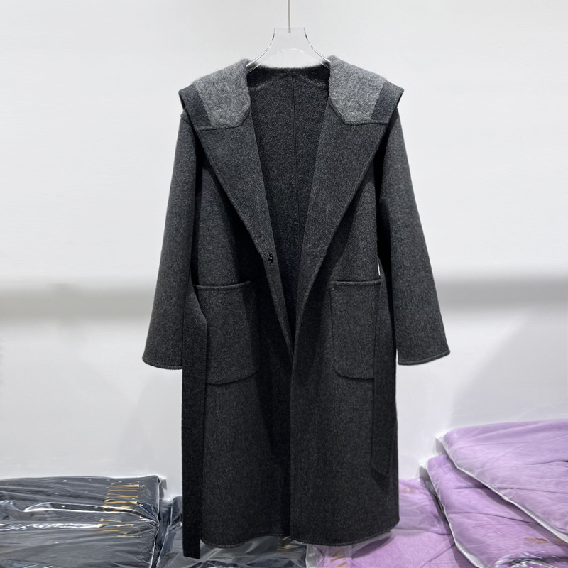 欧洲站双面羊毛呢大衣外套女2025年新款冬装潮流中长款绑带长袖