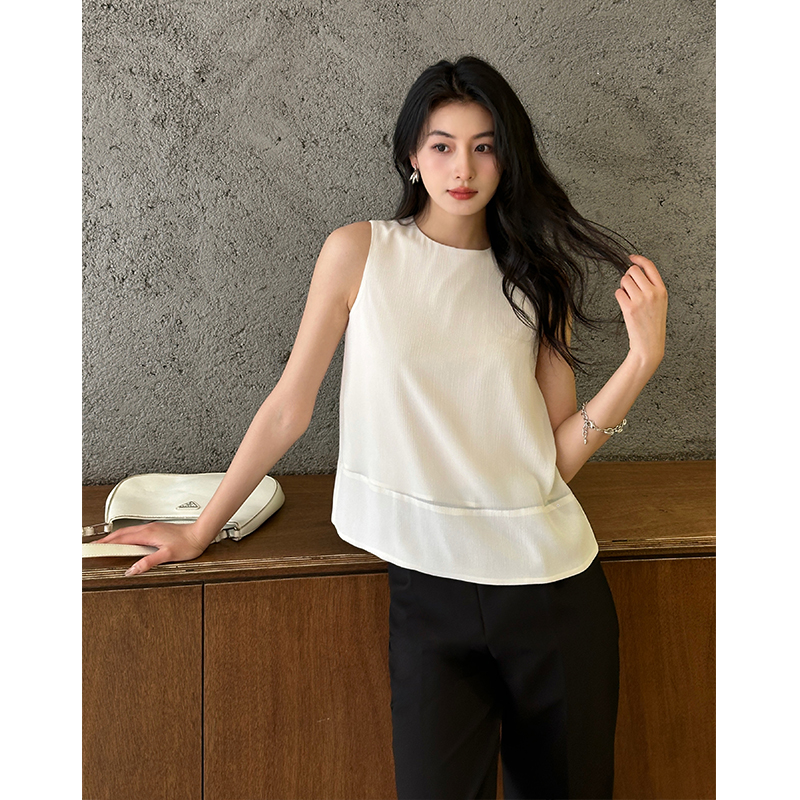 夏季雪纺背心女轻薄透气小衫气质宽松雪纺衫显瘦通勤无袖打底衫女