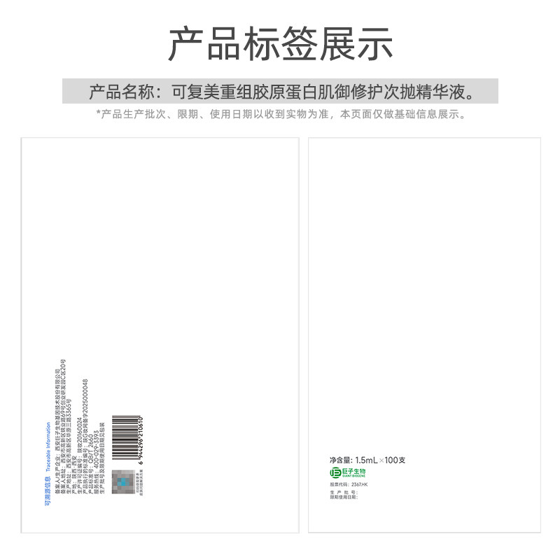 可复美胶原棒2.0重组胶原蛋白次抛精华液100支补水修护保湿舒缓