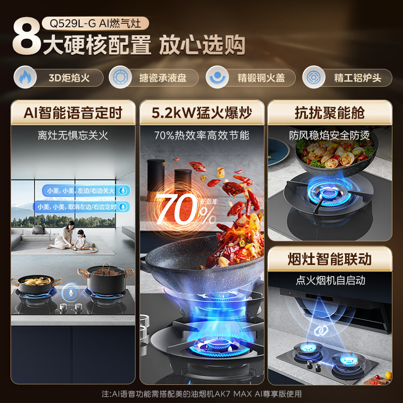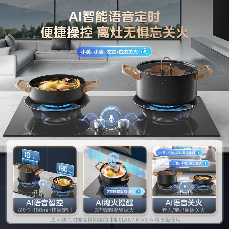 美的AK7MAX语音款定时猛火燃气灶天然气双灶家用嵌入式煤气灶台具