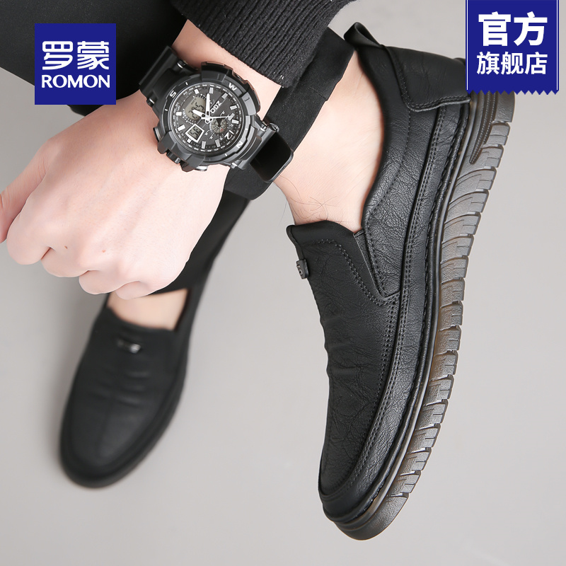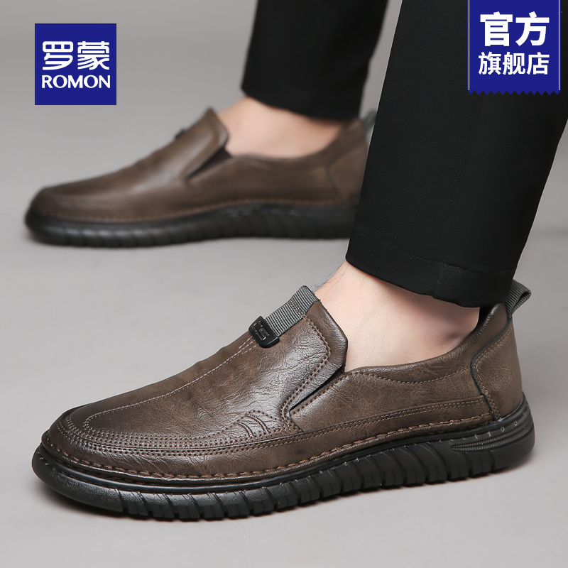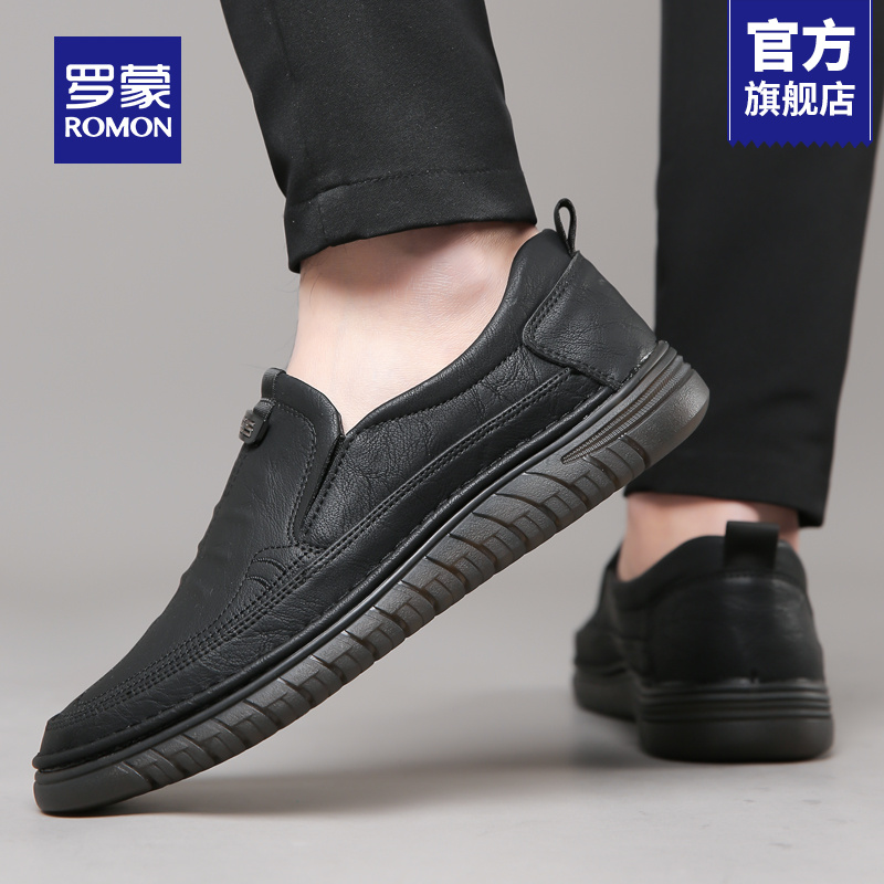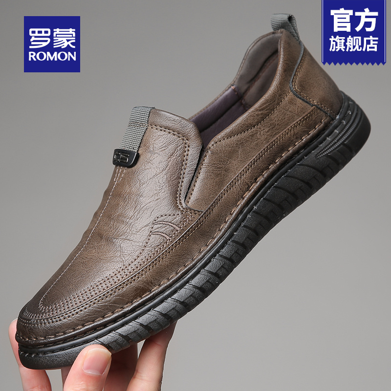 罗蒙大码休闲皮鞋真皮软底爸爸鞋