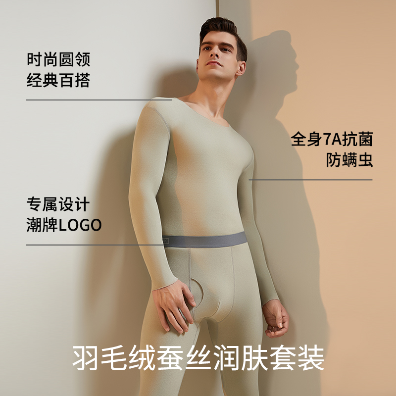 大嘴猴羽毛绒蚕丝发热保暖套装