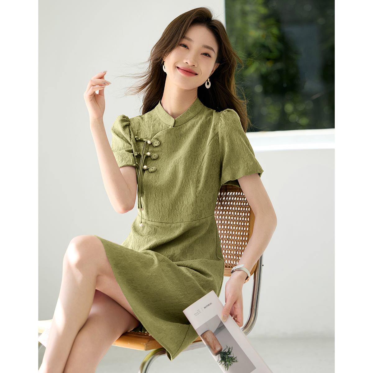 沫晗依美新中式复古盘扣连衣裙