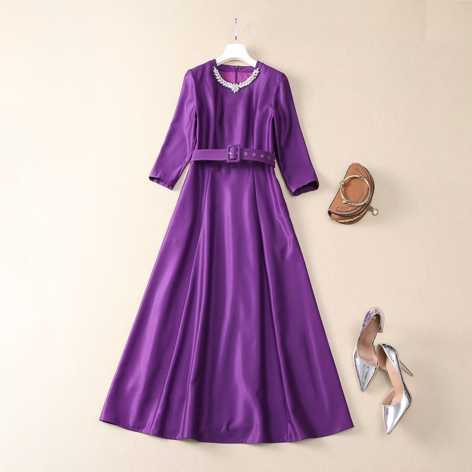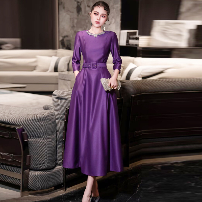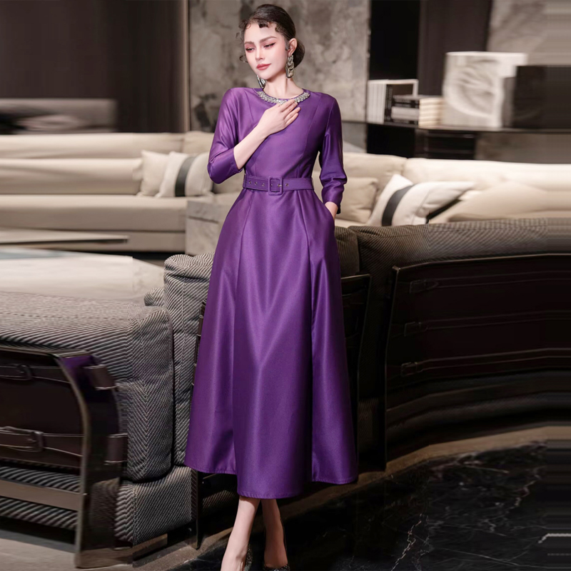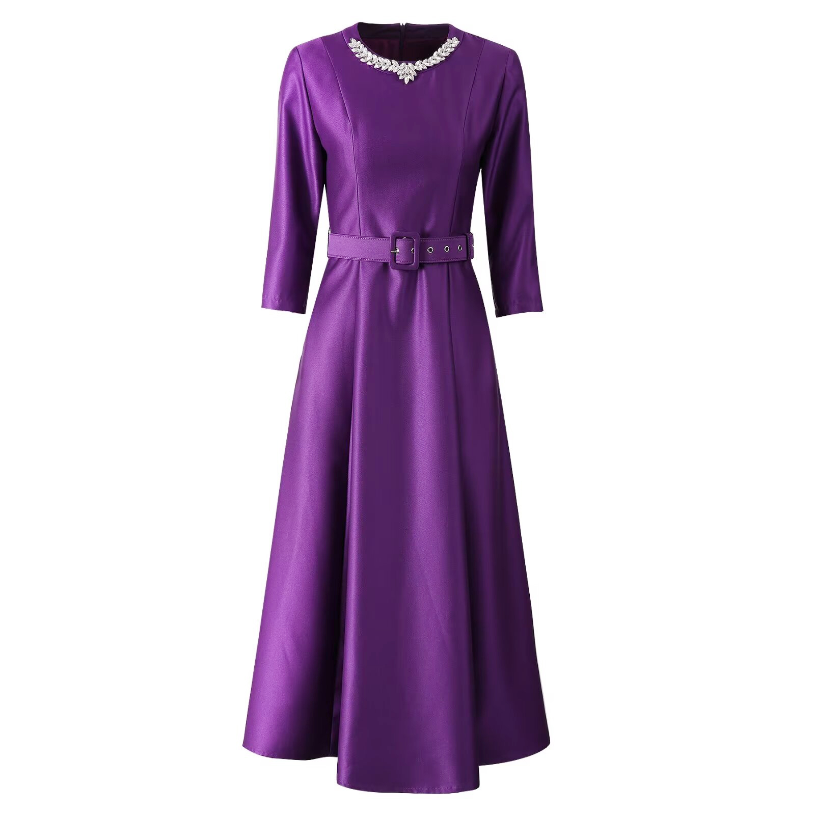 欧货女装2025春季新款高级感紫色通勤长裙气质名媛修身大摆连衣裙