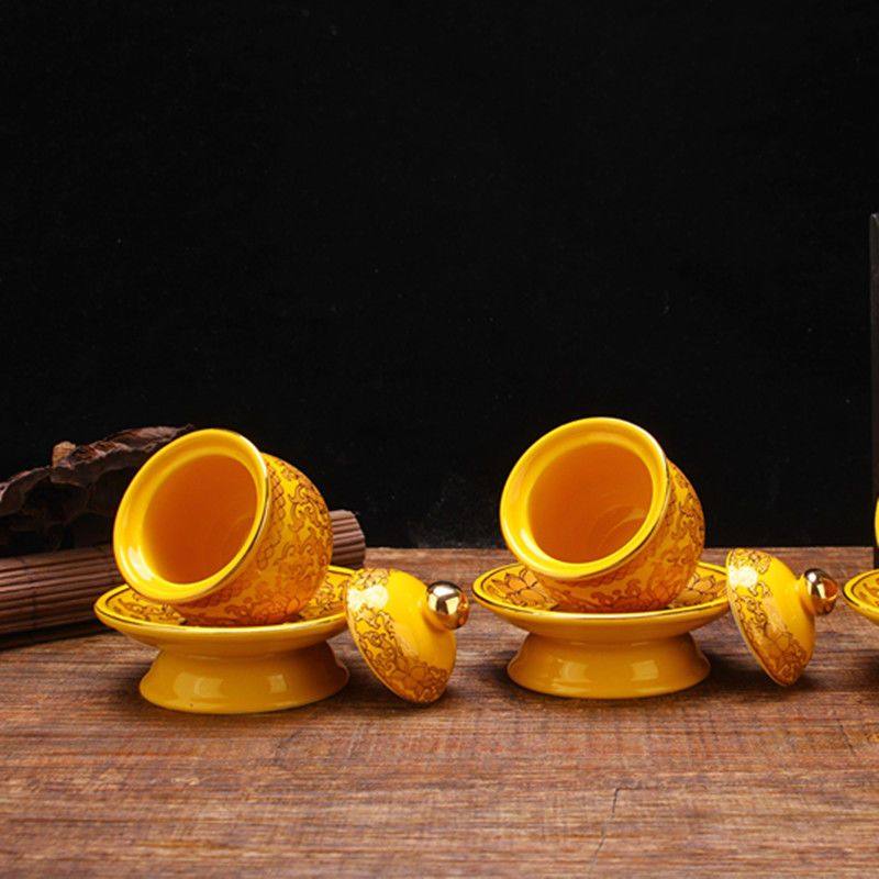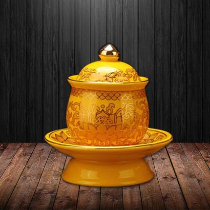 黄莲花无字净水杯 圣水杯 大悲水 水杯家用室内供佛杯佛具