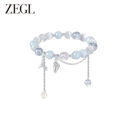 ZEGL淡水珍珠海蓝宝手串情绪稳定水晶石手链女秋冬猫眼石蓝色饰品