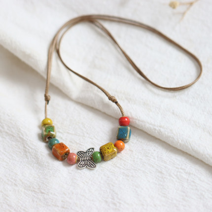 民族风项链景德镇陶瓷饰品可调节瓷珠锁骨链新中式项坠百搭426
