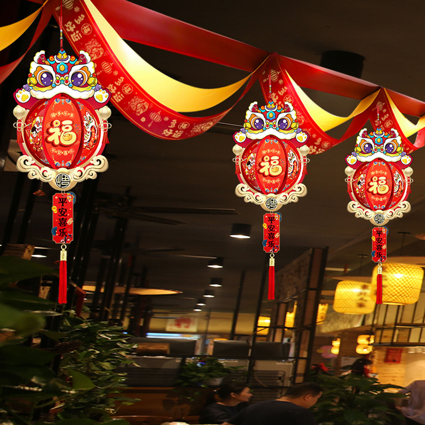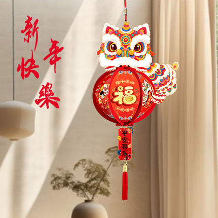 新年元旦春节舞狮小灯笼店铺开业装饰教师幼儿园学校节日活动布置