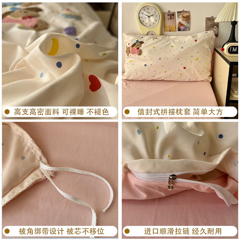 A类可爱卡通全棉四件套2025新款床单被套被罩学生宿舍三件套4