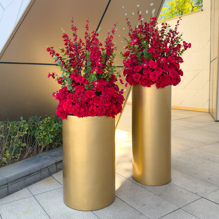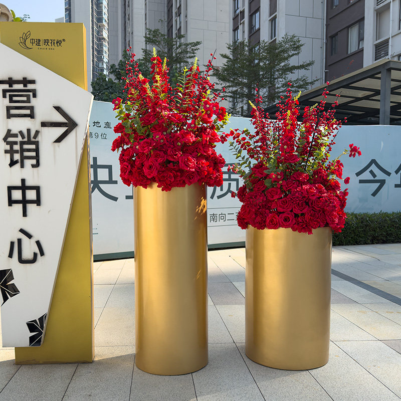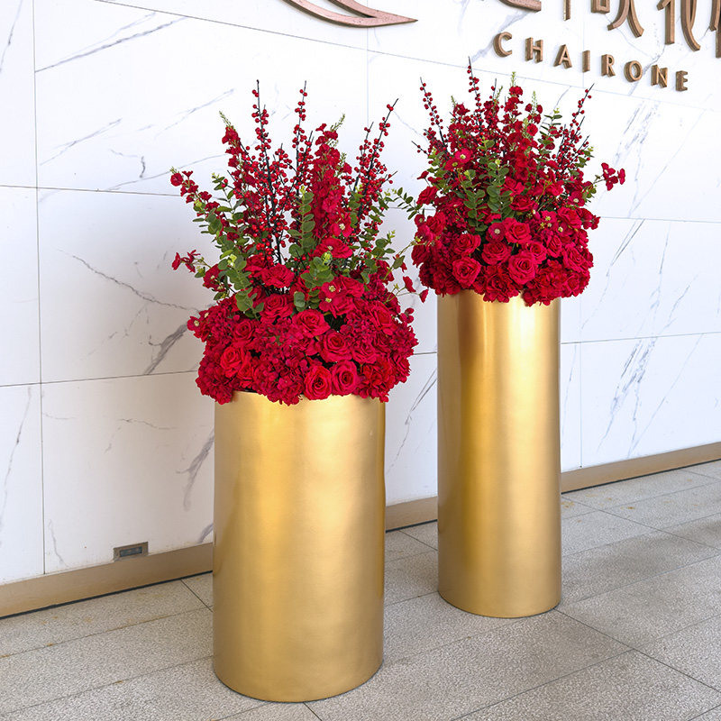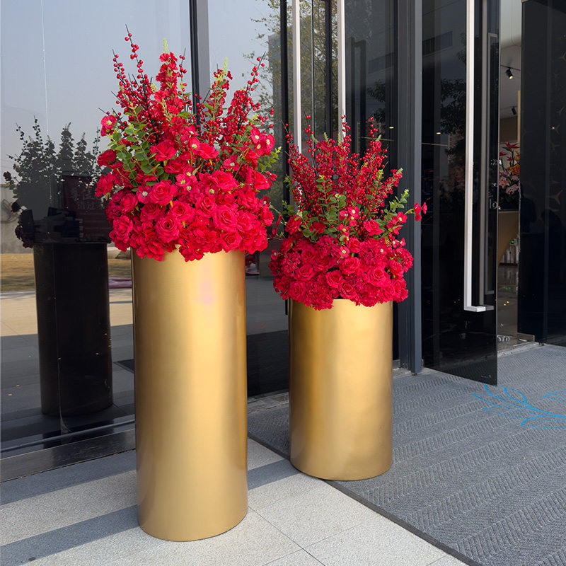 wo+仿真发财果红玫瑰金色落地花盆酒店旋转门商场售楼处迎宾摆放
