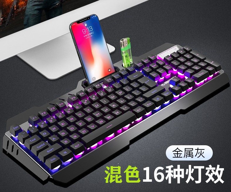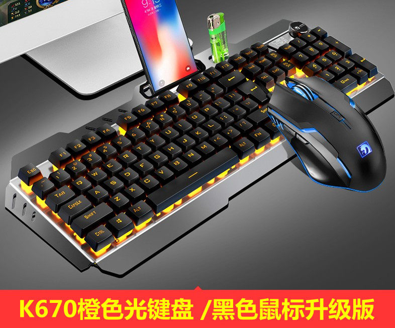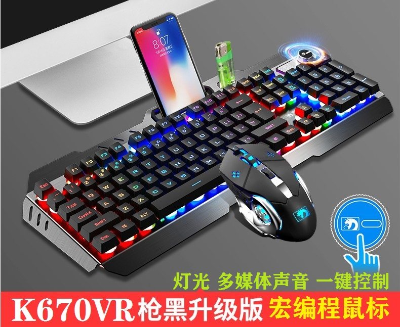 新盟曼巴狂蛇K670键盘金属悬浮机械手感 发光游戏有线USB键鼠套装