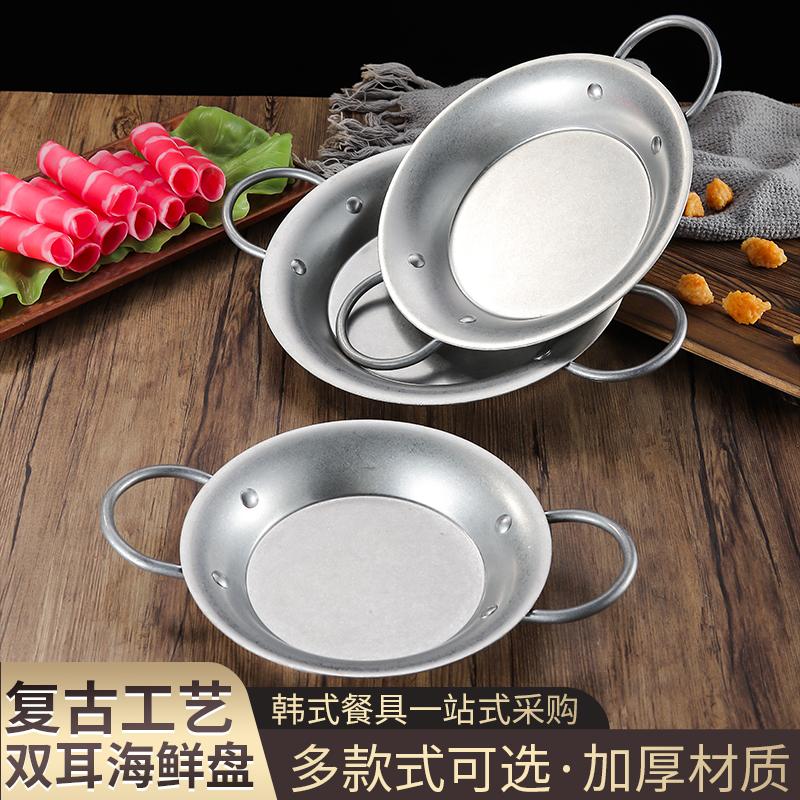 不锈钢干锅平底锅圆形意面盘复古西班牙海鲜锅焗饭锅家用双耳干锅