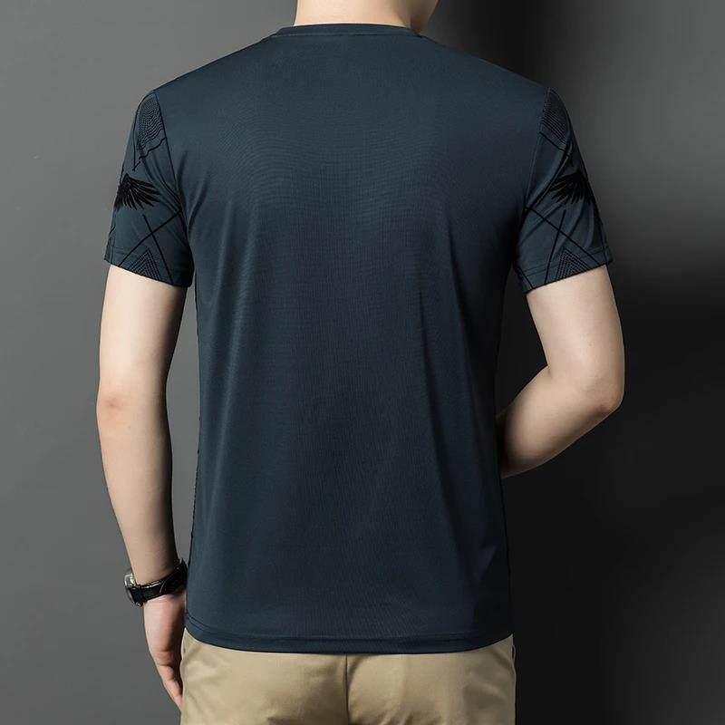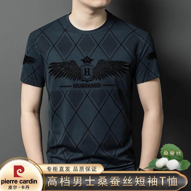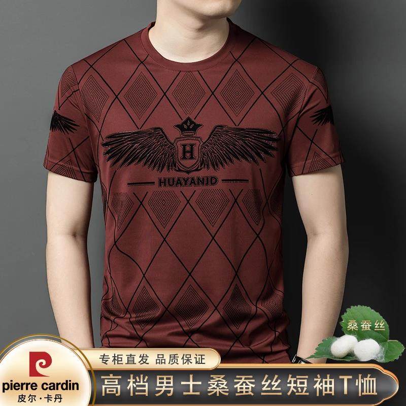 皮尔卡丹短袖t恤男士夏季桑蚕丝半袖新款薄圆领印花凉感透气时尚