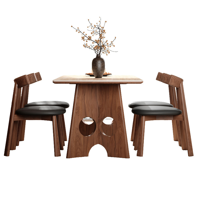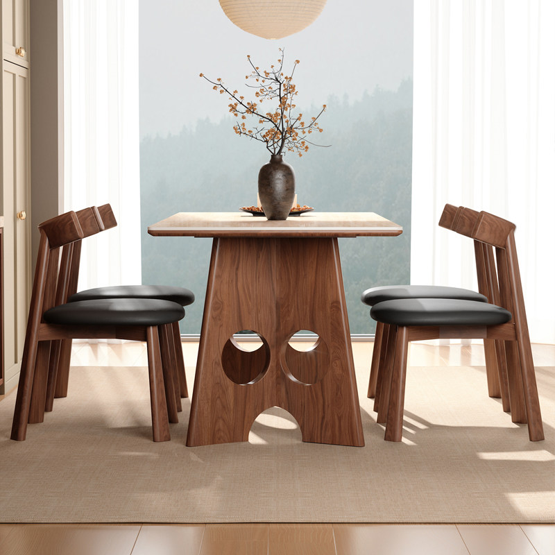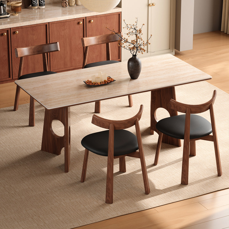 欧派中古风美式实木岩板餐桌椅2026新款长方形家庭鱼尾小户型法式
