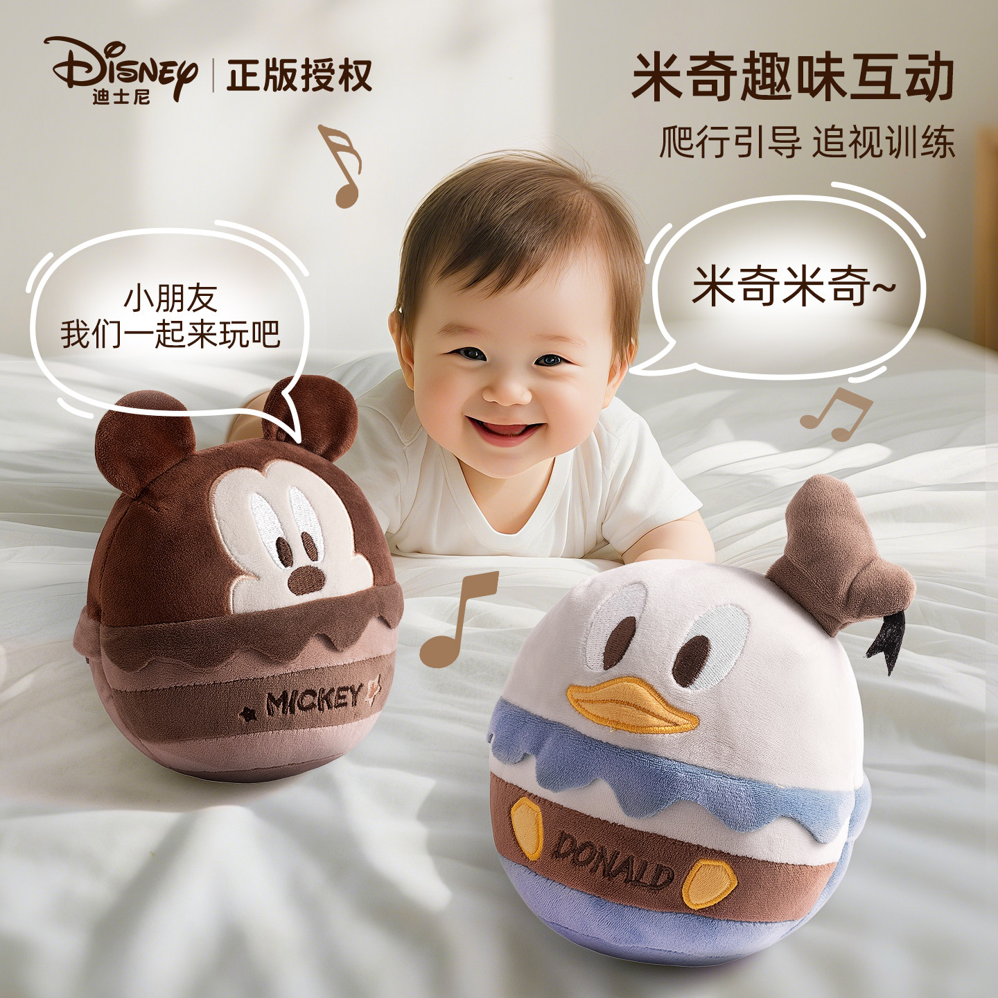 迪士尼婴儿玩具音乐跳跳球0-1岁学说话趴练毛绒玩偶6个月宝宝学舌