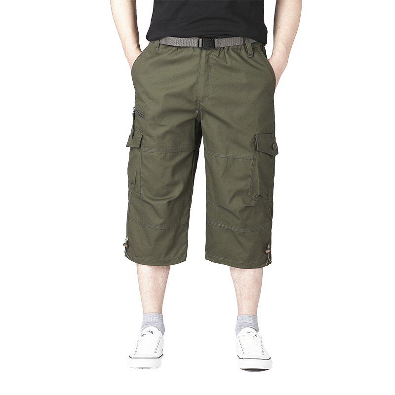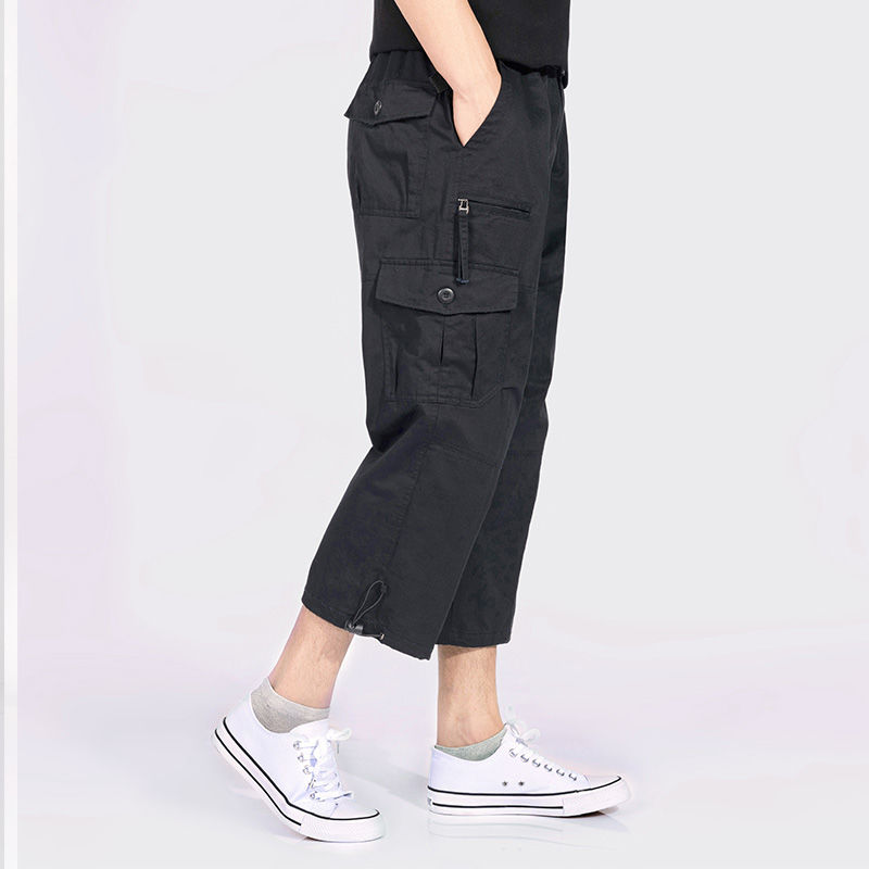 新款夏季男加肥加大宽松七分裤多口袋工装短裤中裤纯棉高腰7分裤