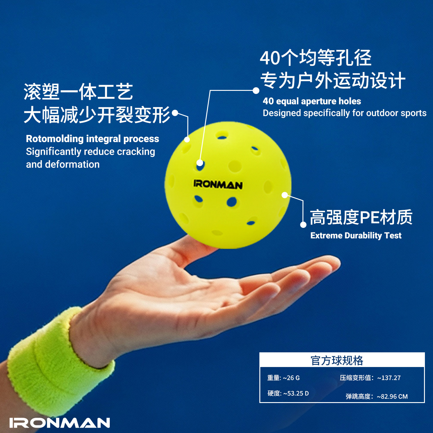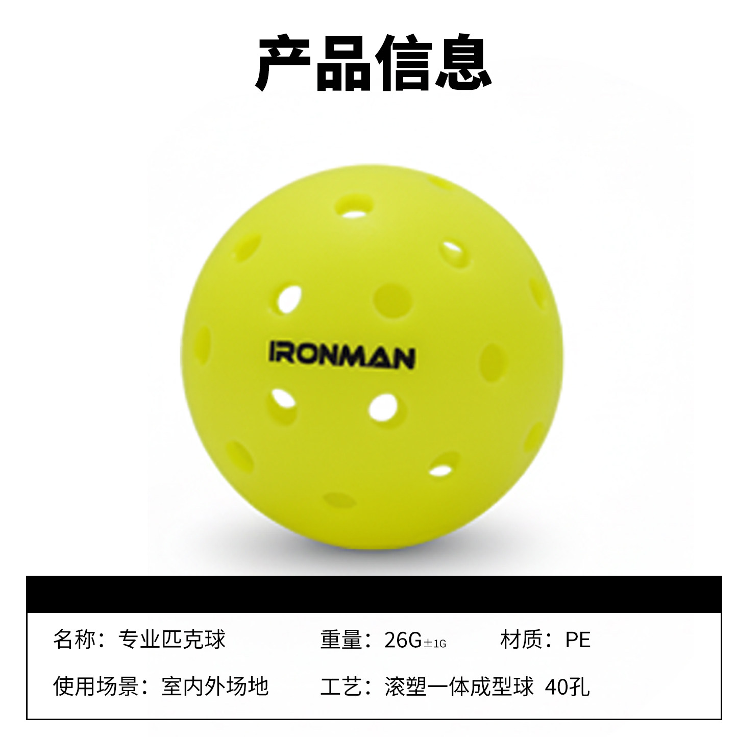 铁人滚塑匹克球pickleball比赛运动用洞洞训练球40孔室内室外户外