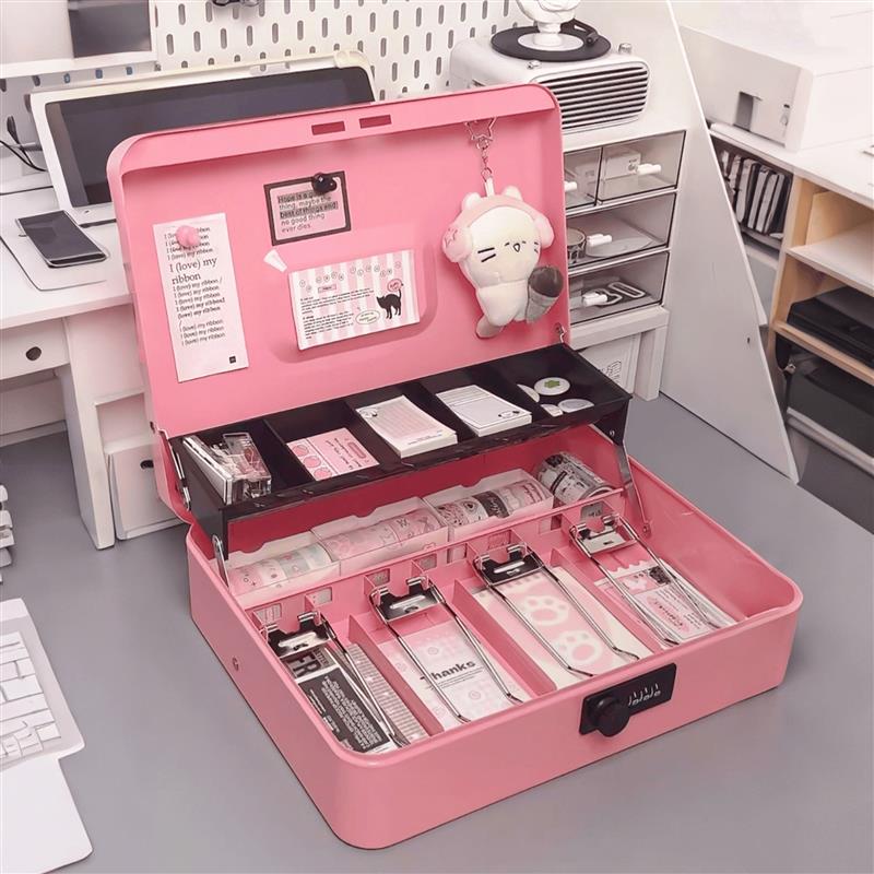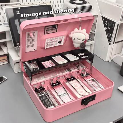 收银箱存钱罐桌面收纳盒大容量儿童家用带锁收纳盒储蓄盒桌面摆件
