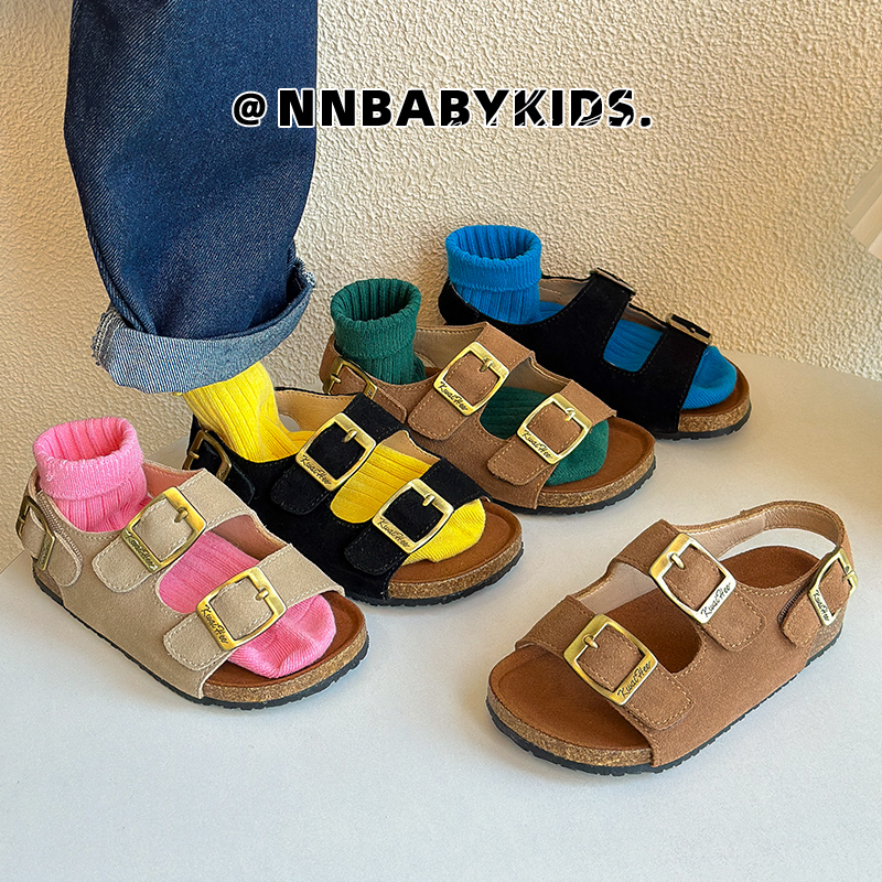 ins韩版儿童博肯凉鞋真皮露趾男女童软木沙滩鞋夏季外穿3宝宝凉拖