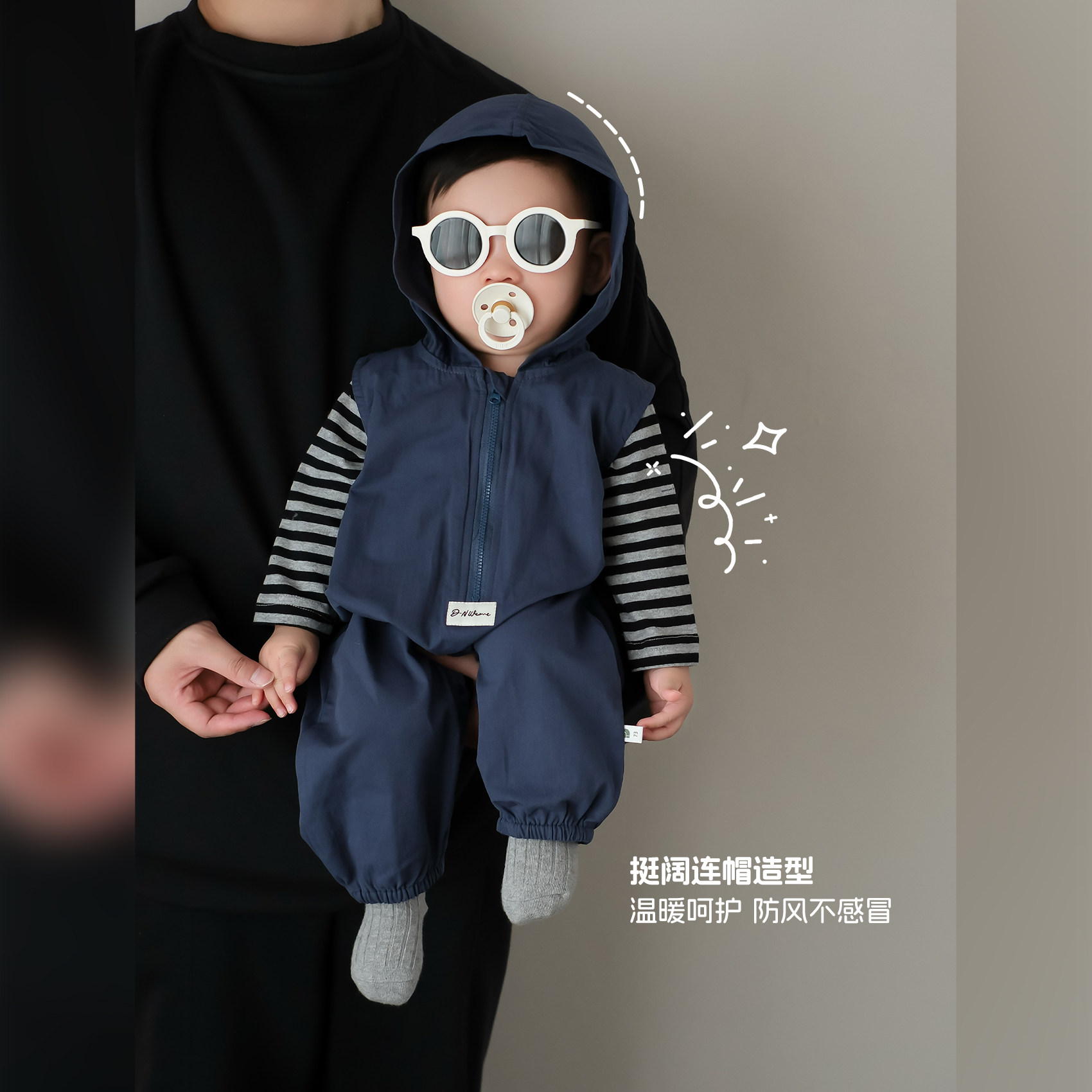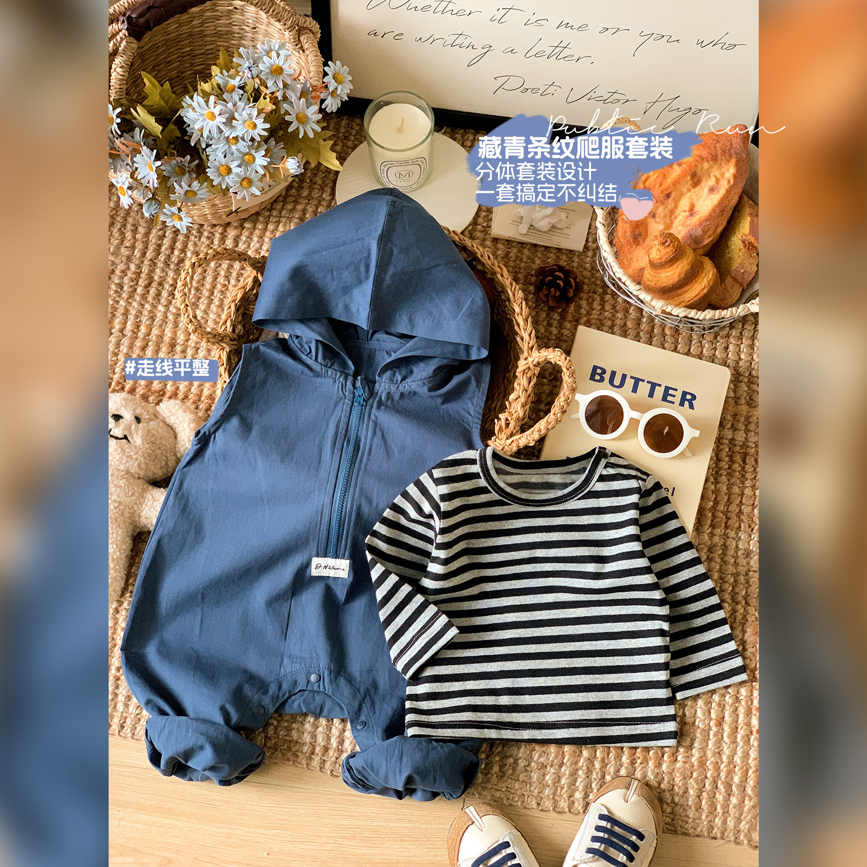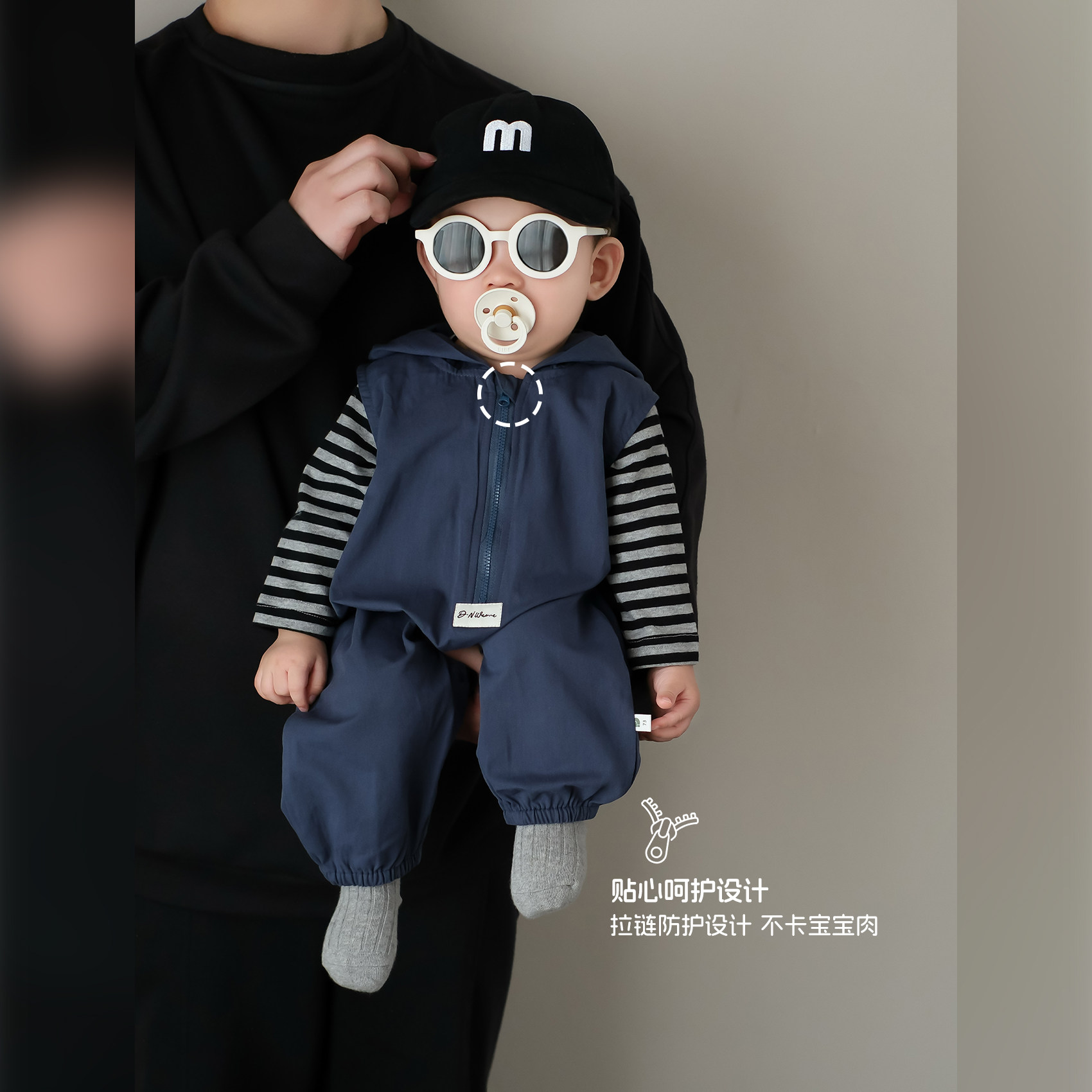 小月龄洋气小套装婴儿男宝宝衣服春季新款男童上衣背带裤两件套装