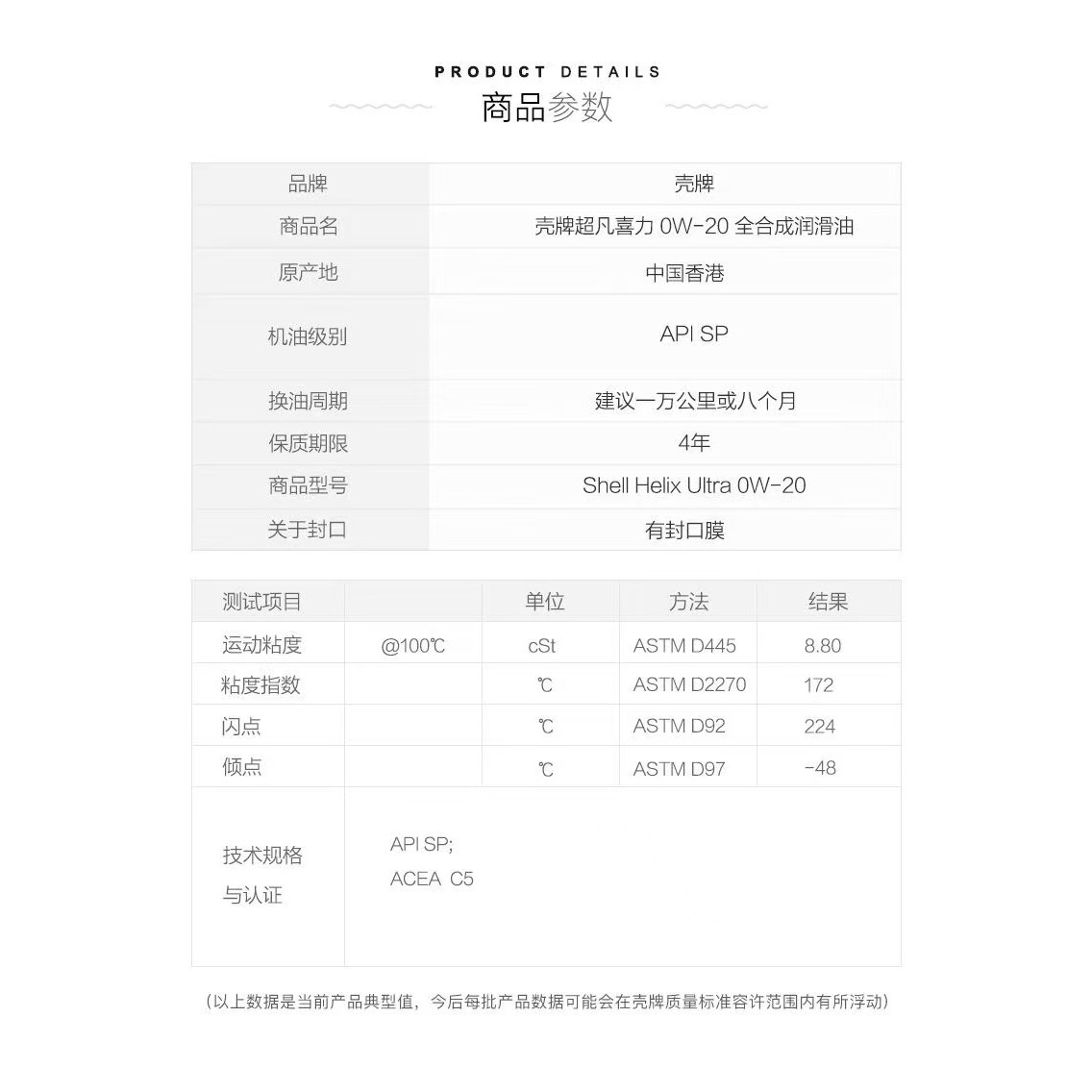 正品Shell/壳牌机油0W-20全合成机油超凡喜力汽车机油4L 原装进口