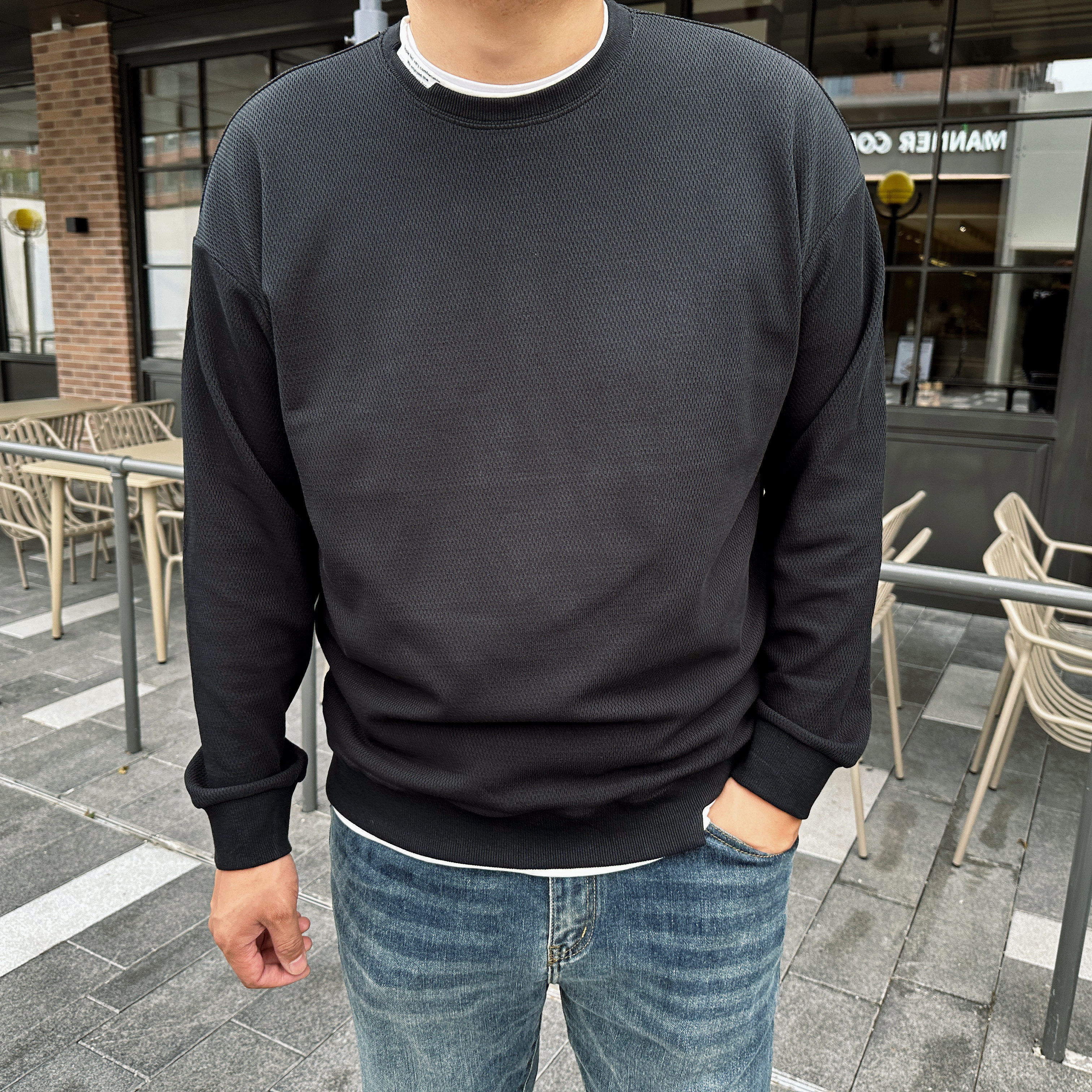 大依无忧春秋新款假两件潮胖子加肥加大码男款圆领长袖卫衣