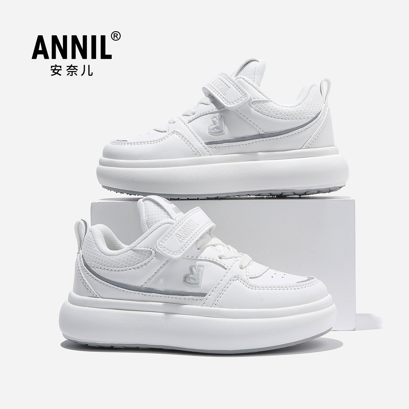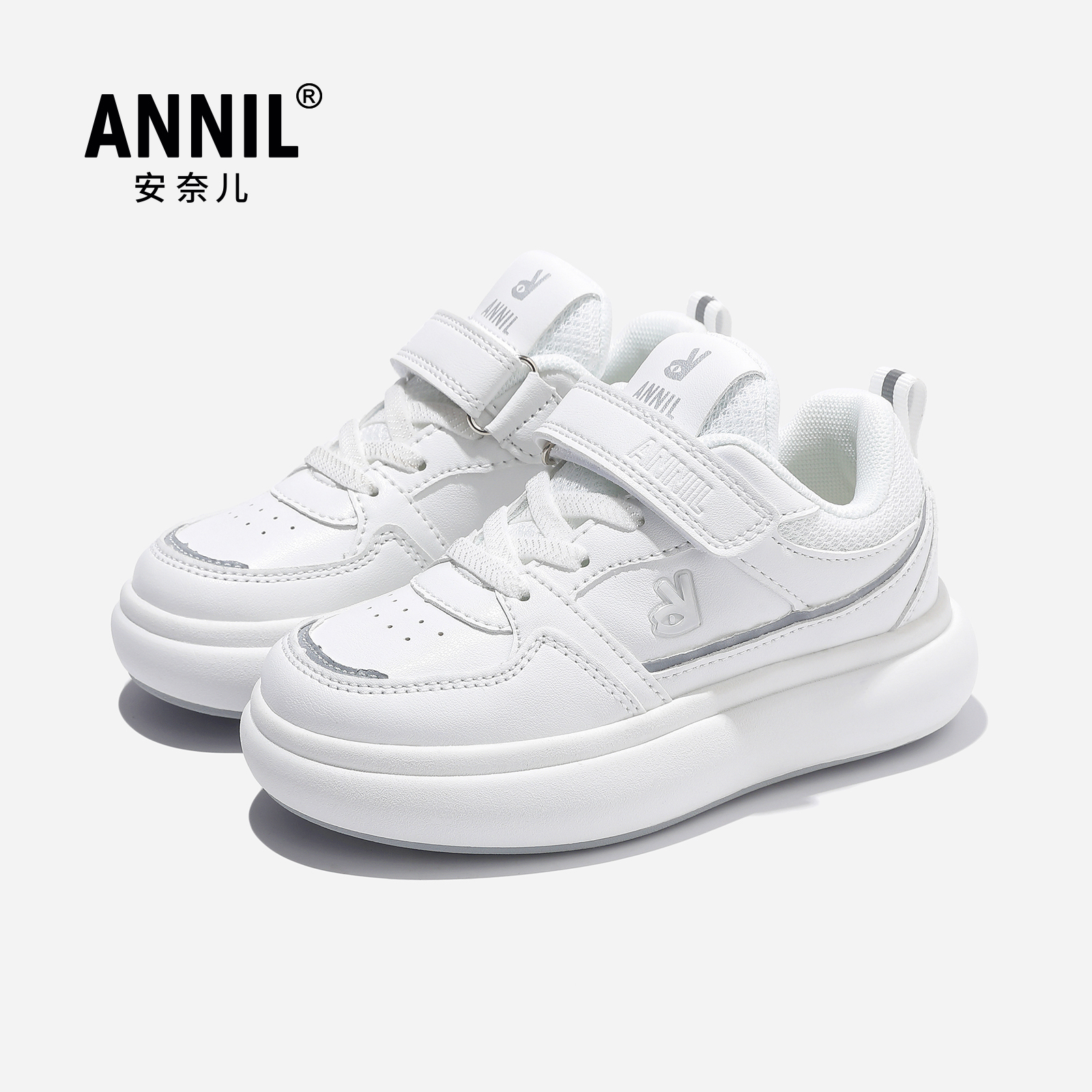 annil安奈儿童鞋2025年春秋新款女童百搭小白鞋男童舒适休闲板鞋