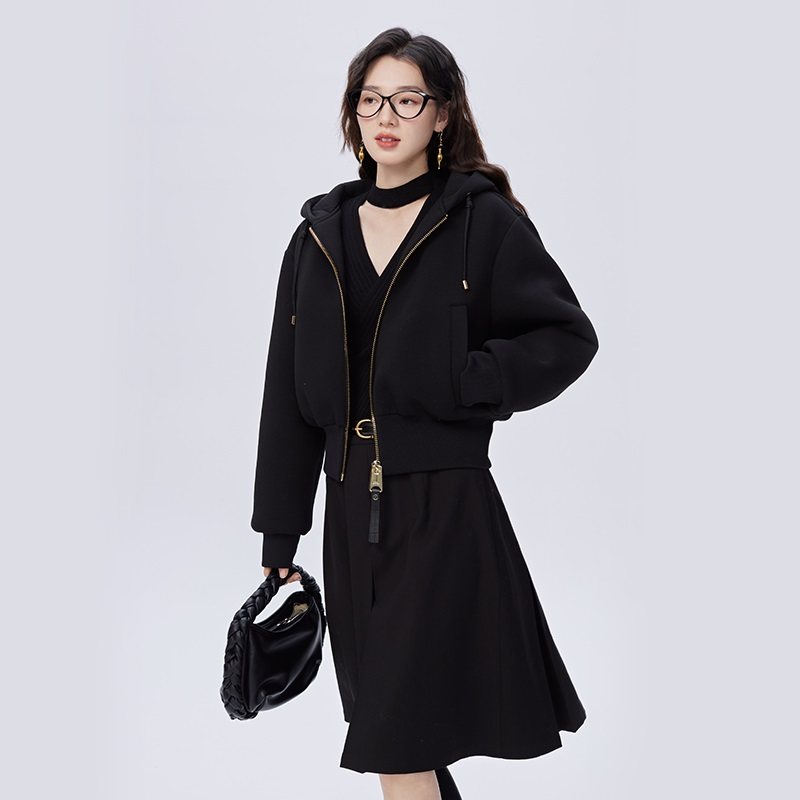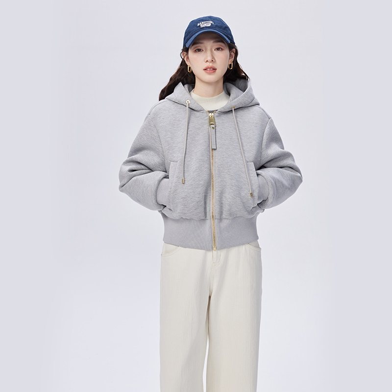 艾莱依奥莱卫衣式羽绒服女冬季新款短款时尚休闲鸭绒连帽韩版外套