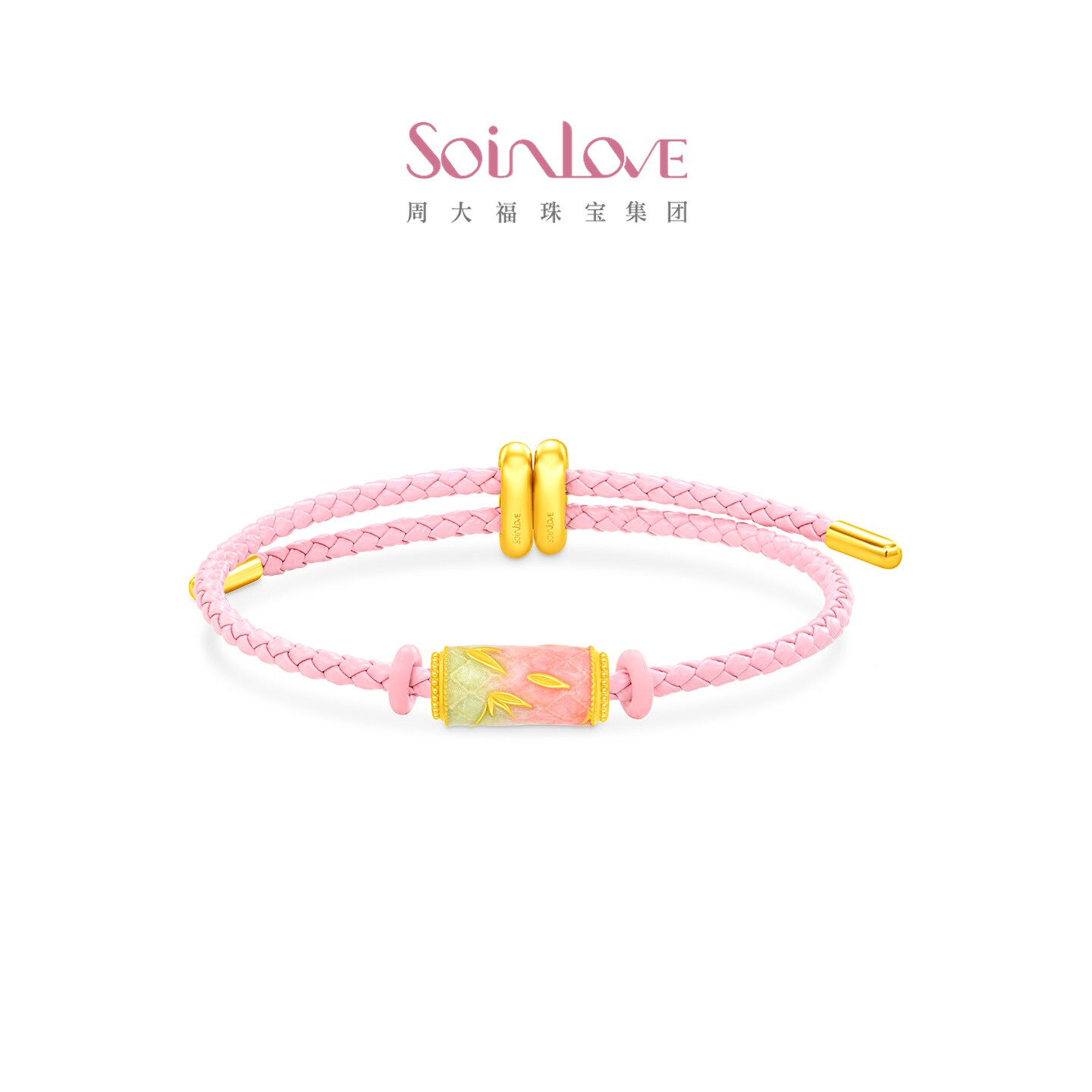 周大福SOINLOVE蜜粉金十里红妆竹韵黄金转运珠配绳[多款]圣诞礼物