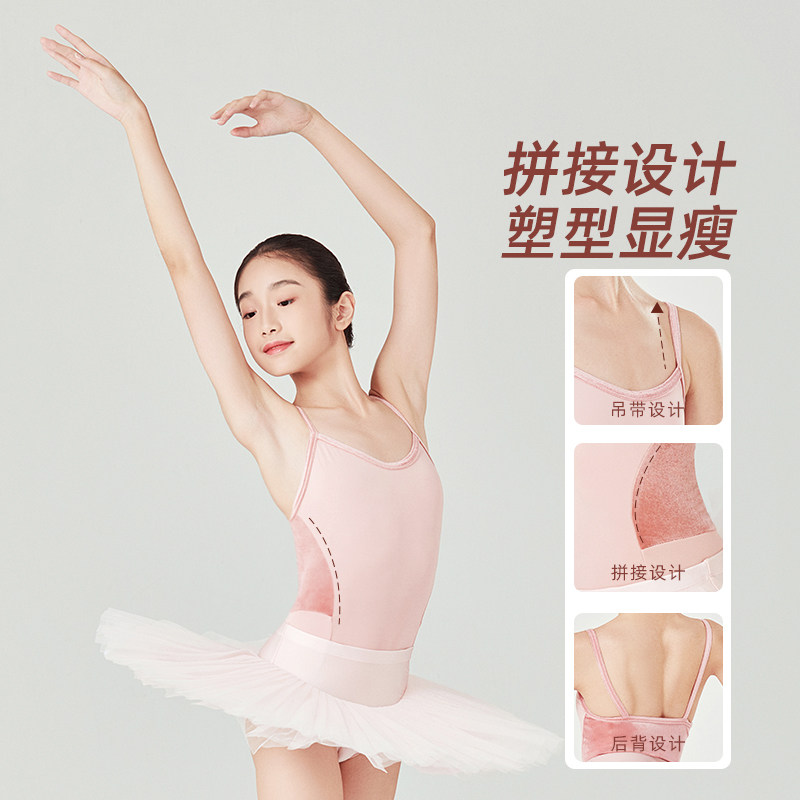 Sansha 三沙儿童吊带舞蹈服 芭蕾舞练功服少女考级连体服拼接撞色