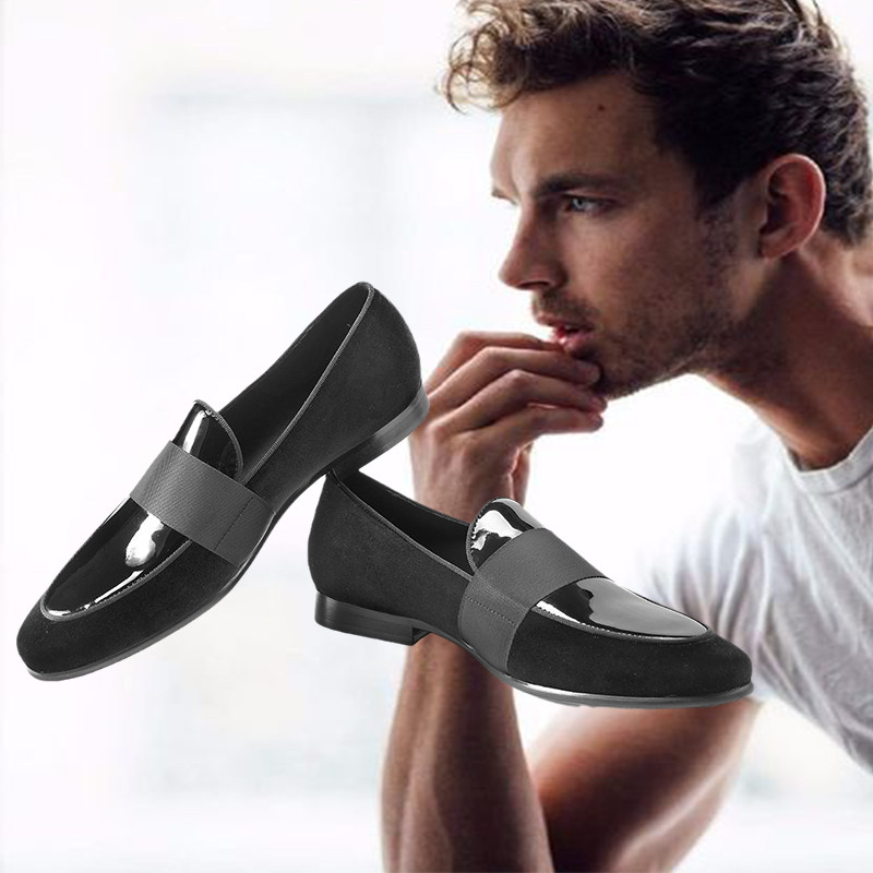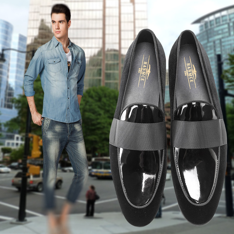 广州汉慕思天鹅绒漆皮乐福鞋韩版复古拼接商务休闲圆头透气耐磨