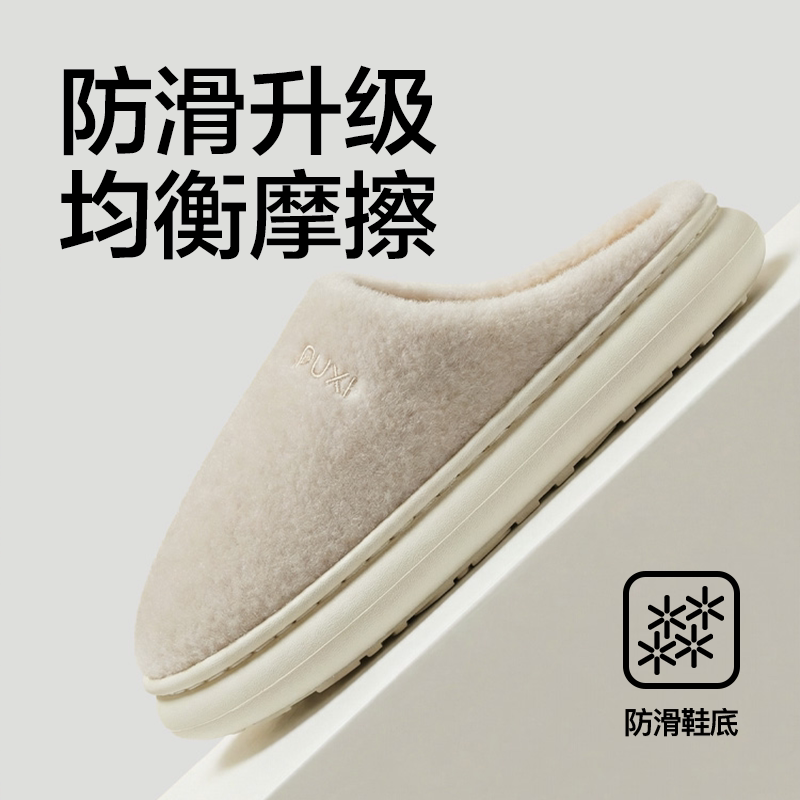 朴西棉拖鞋女士秋冬季厚底简约保暖室内居家用软底防滑情侣棉拖男