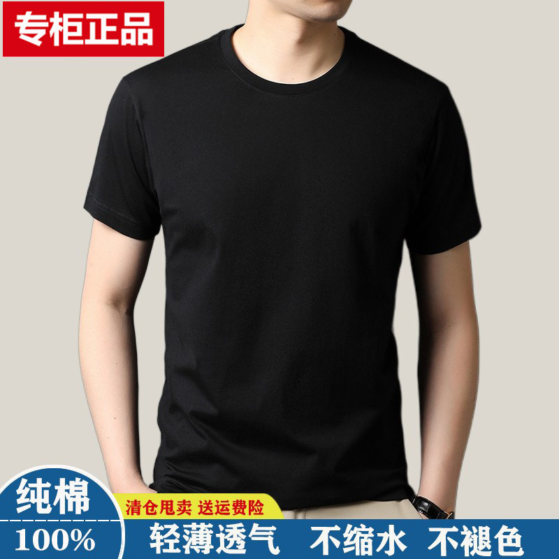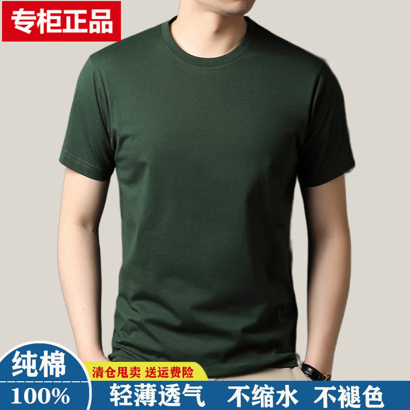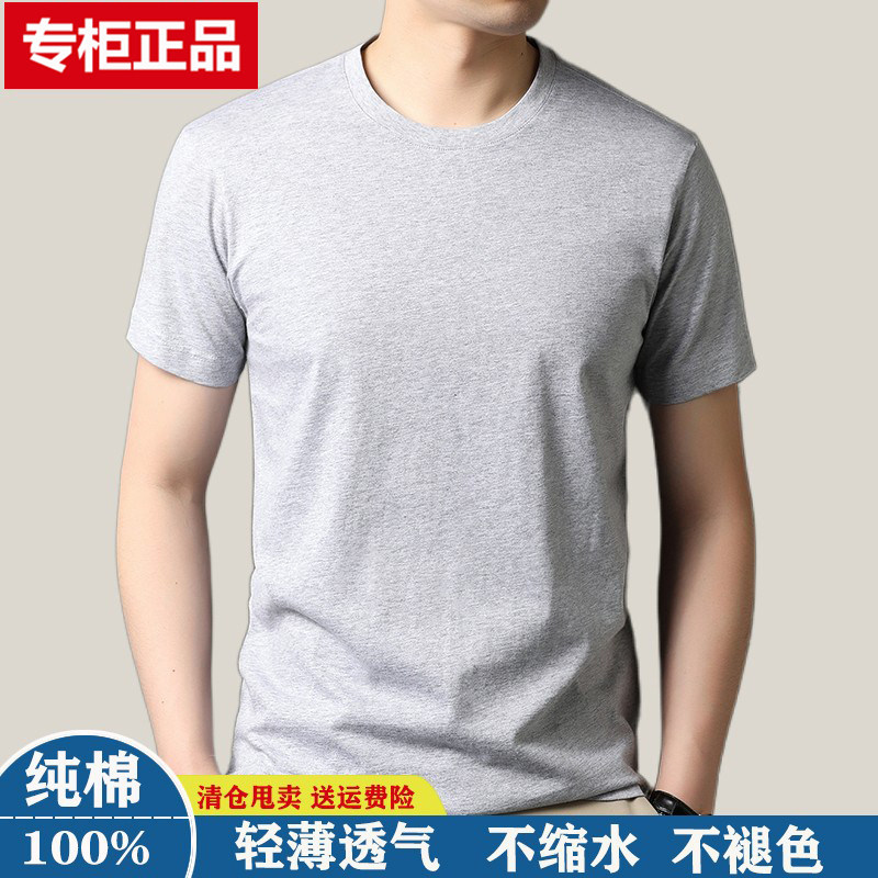 鄂尔多斯市100%纯棉短袖T恤中青年男士圆领商务休闲纯色打底衫