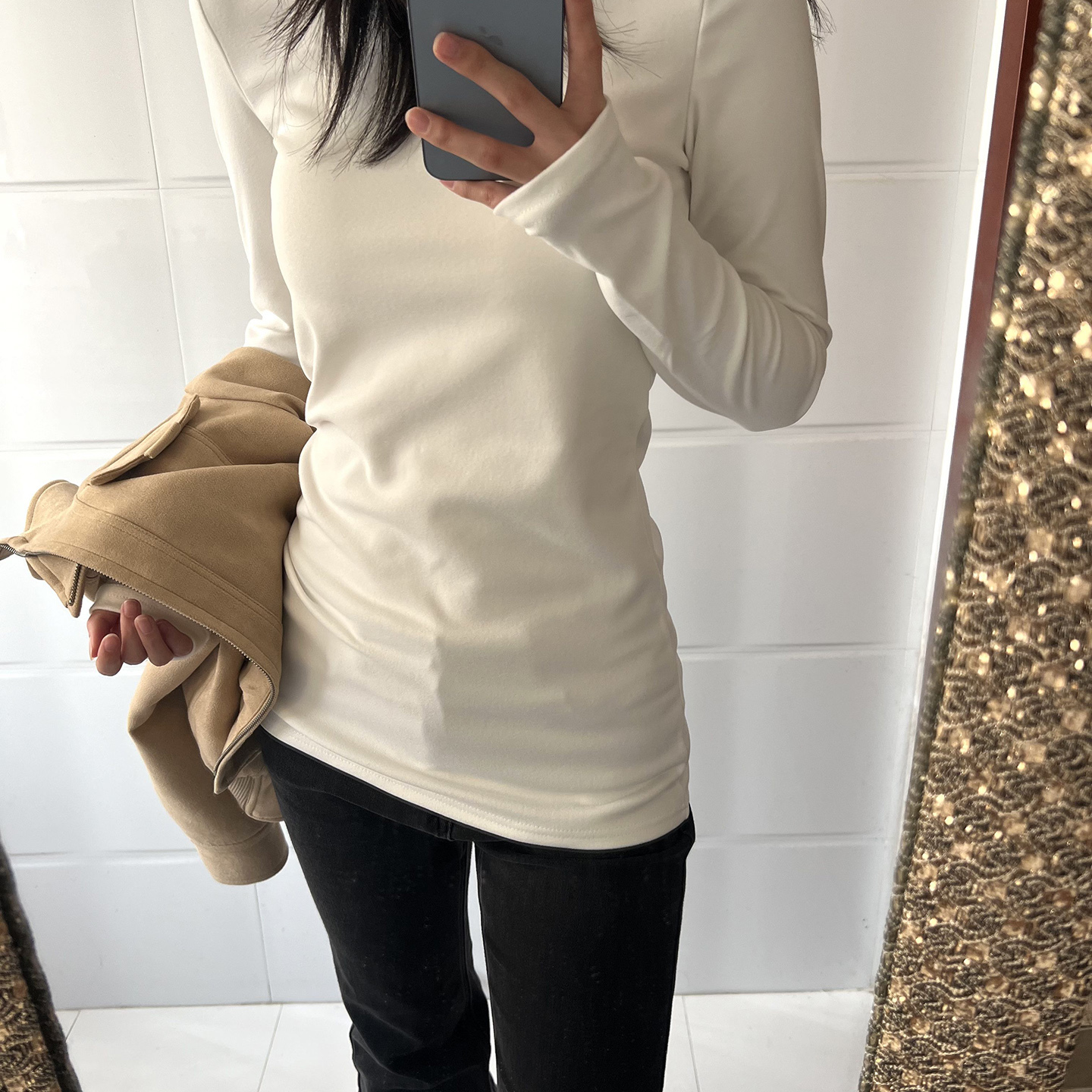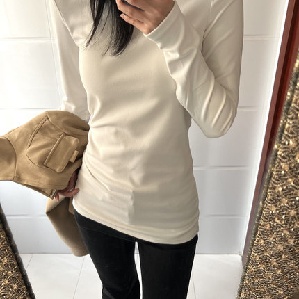 白色正肩圆领双面德绒打底衫女秋冬季2025新款中长款长袖磨毛t恤