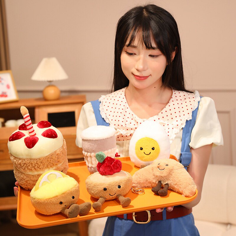 生日蛋糕毛绒玩具樱桃草莓蛋挞水煮蛋咖啡仔玩偶牛角包节日礼物