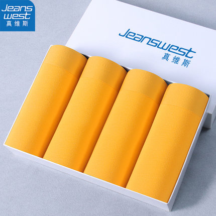 真维斯本命年莫代尔抑菌男士内裤男黄色平角裤金色男生短裤衩礼盒
