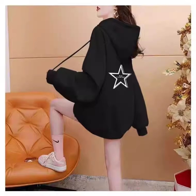 美拉德大码中长款连帽加绒卫衣2025秋冬小众设计美式复古宽松外套