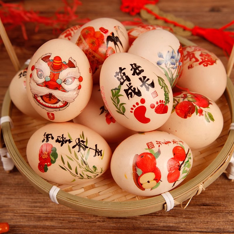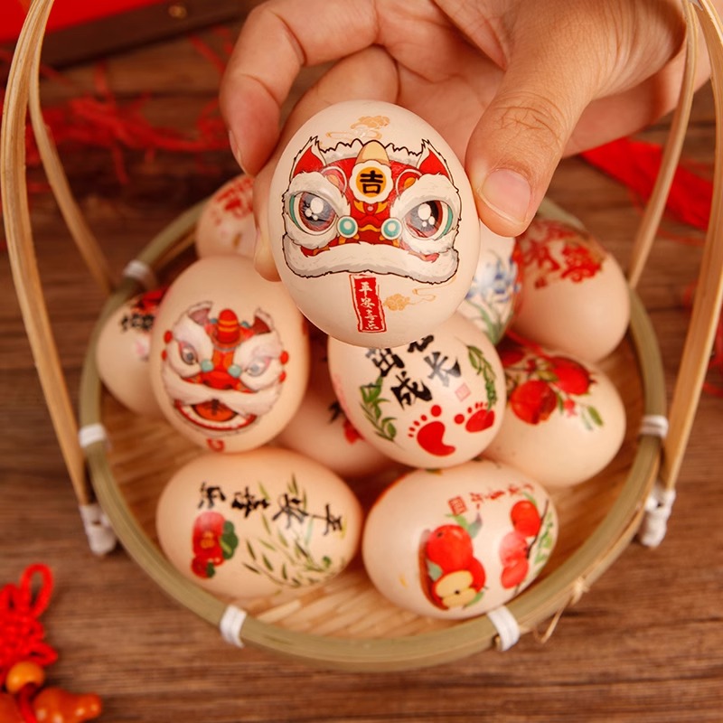 满月喜蛋贴周岁鸡蛋贴纸宝宝新生诞喜贴纸龙年生日满月礼摆台布置