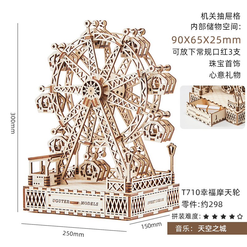 木质拼装首饰盒八音乐盒成人手工diy积木拼图模型女孩子生日礼物